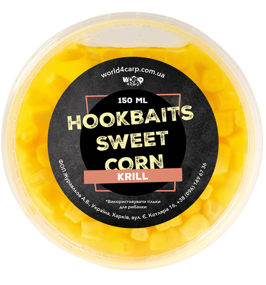Уся лінійка насадочної кукурудзи World4Carp Hookbaits sweet corn містить лише натуральні ароматизатори та інгредієнти. Даний вид приманок довів свою працездатність та уловистість на диких та комерційних водоймах та абсолютно безпечний для прісноводних риб.