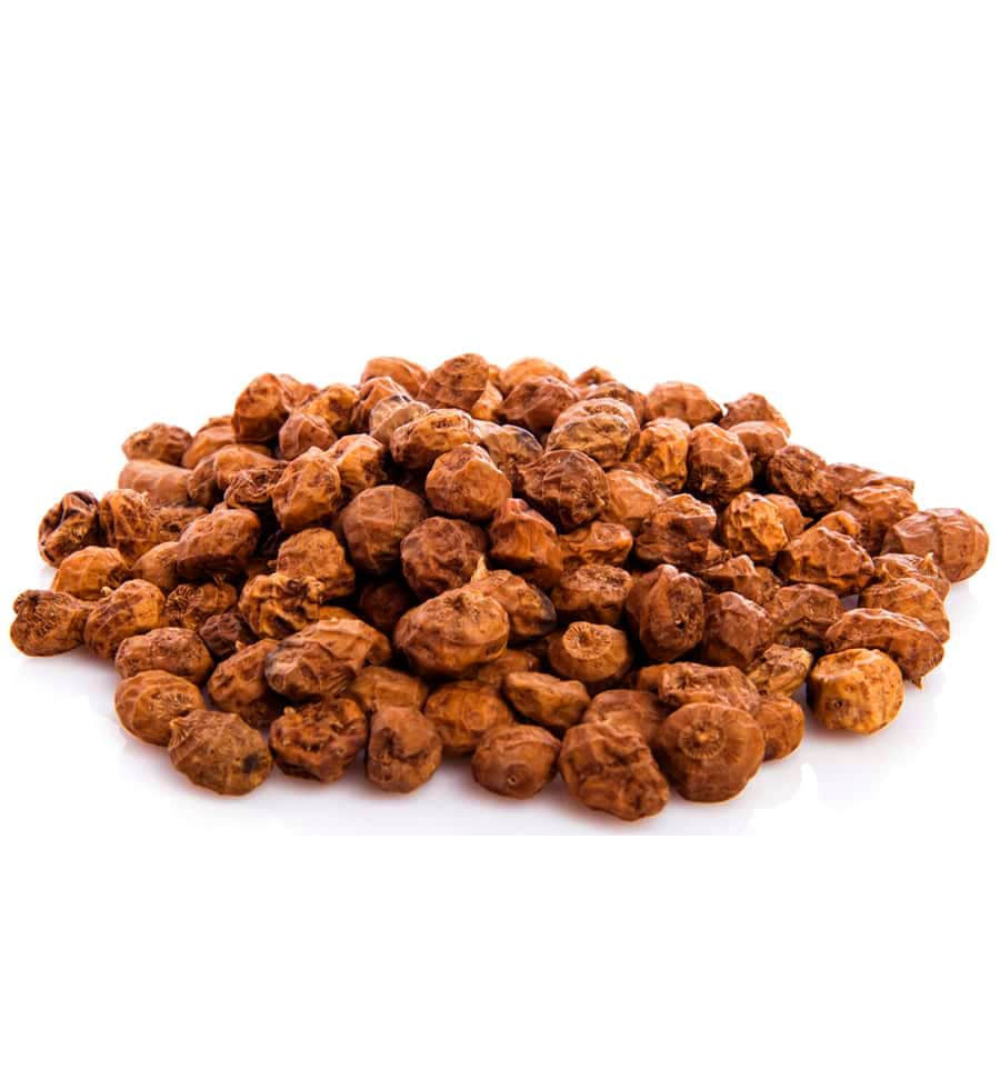 Ці горіхи містять багато цукру, олій, крохмалю та клітковини, а також білки, вітаміни та мінерали. "Тигровий горіх" отримав свою назву у народі за зовнішній вигляд. Насправді його літературна назва земляний мигдаль або чуфа.